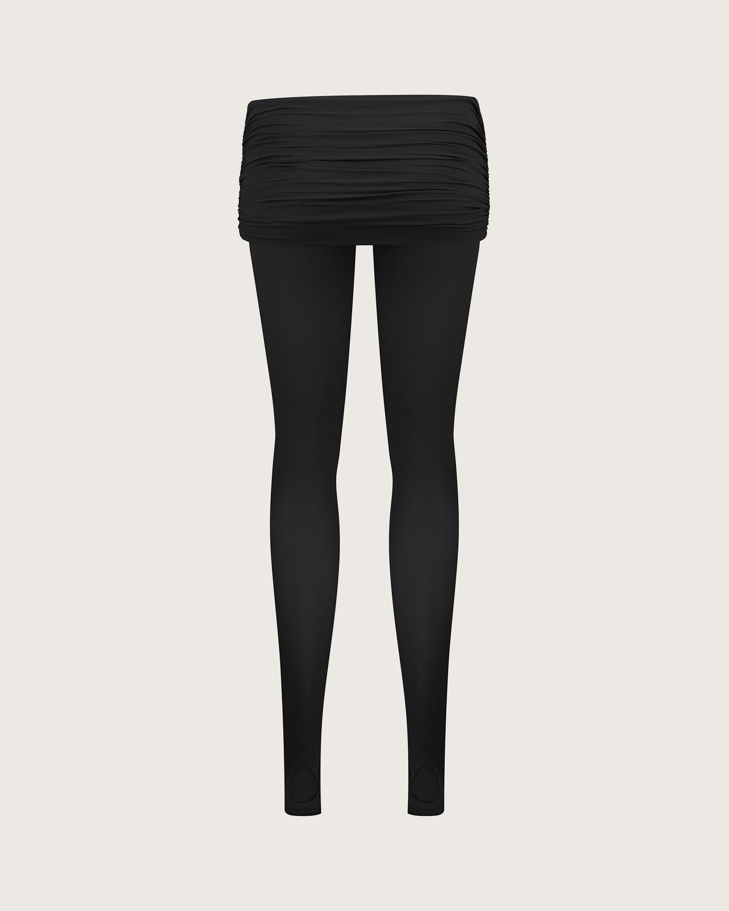 A sleek, minimal legging made soft and supple by a lush knit. Jodhpur straps at the arch of the foot accentuate length. Rollover waistband ruches across the hips. Designed for a low-slung fit.