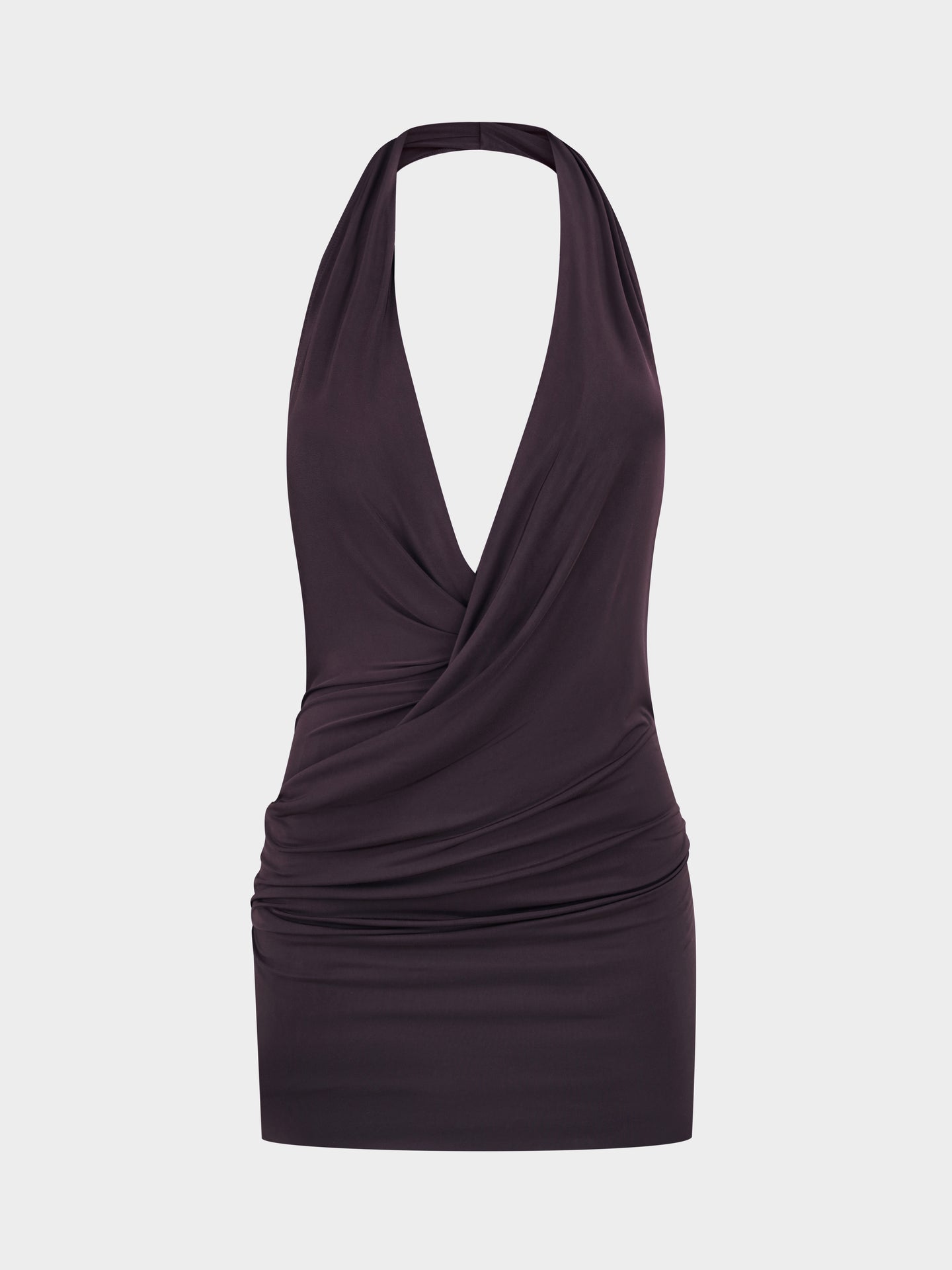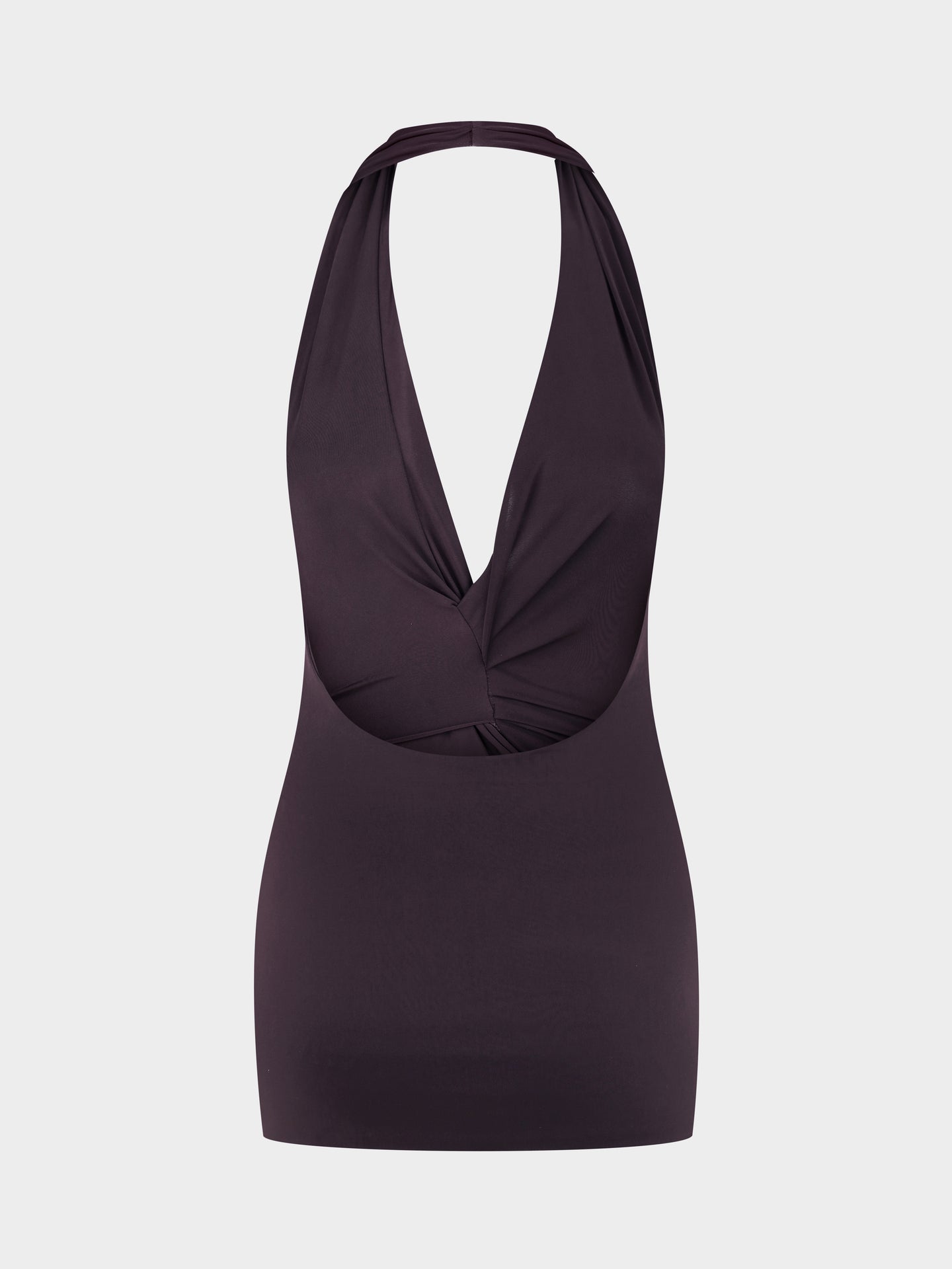 A halterneck top livened by dynamic draping and gathering. Shaped to accentuate the curves of the hips. Butter jersey selected for a second skin feel. Slips on.