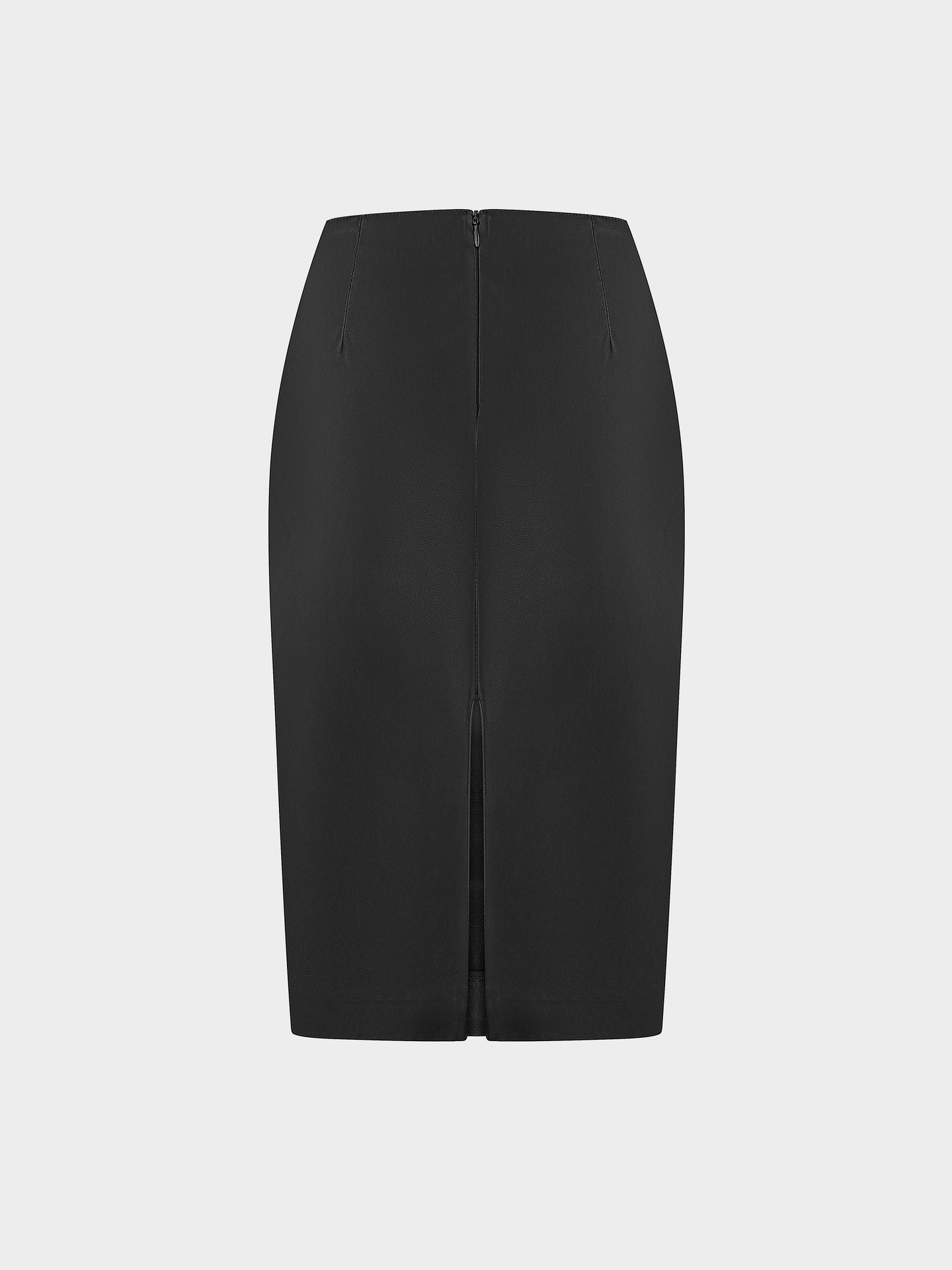 A low-slung pencil skirt that reimagines tailoring through a nocturnal lens. Crafted in lustrous stretch faux leather with a jersey-like feel, it hugs the hips with ease. Finished with a concealed zipper and high back slit.
