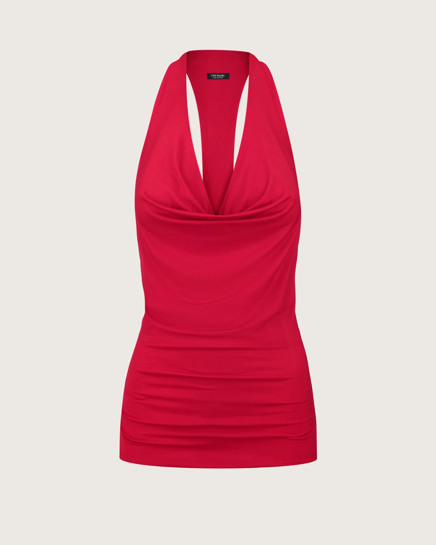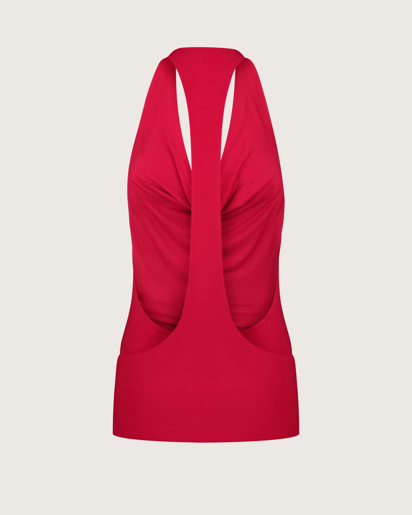 An easy-fitting draped u-neckline top in the fluid drape of butter jersey. Soft u-neckline and bare racer back that plunges to the waist.